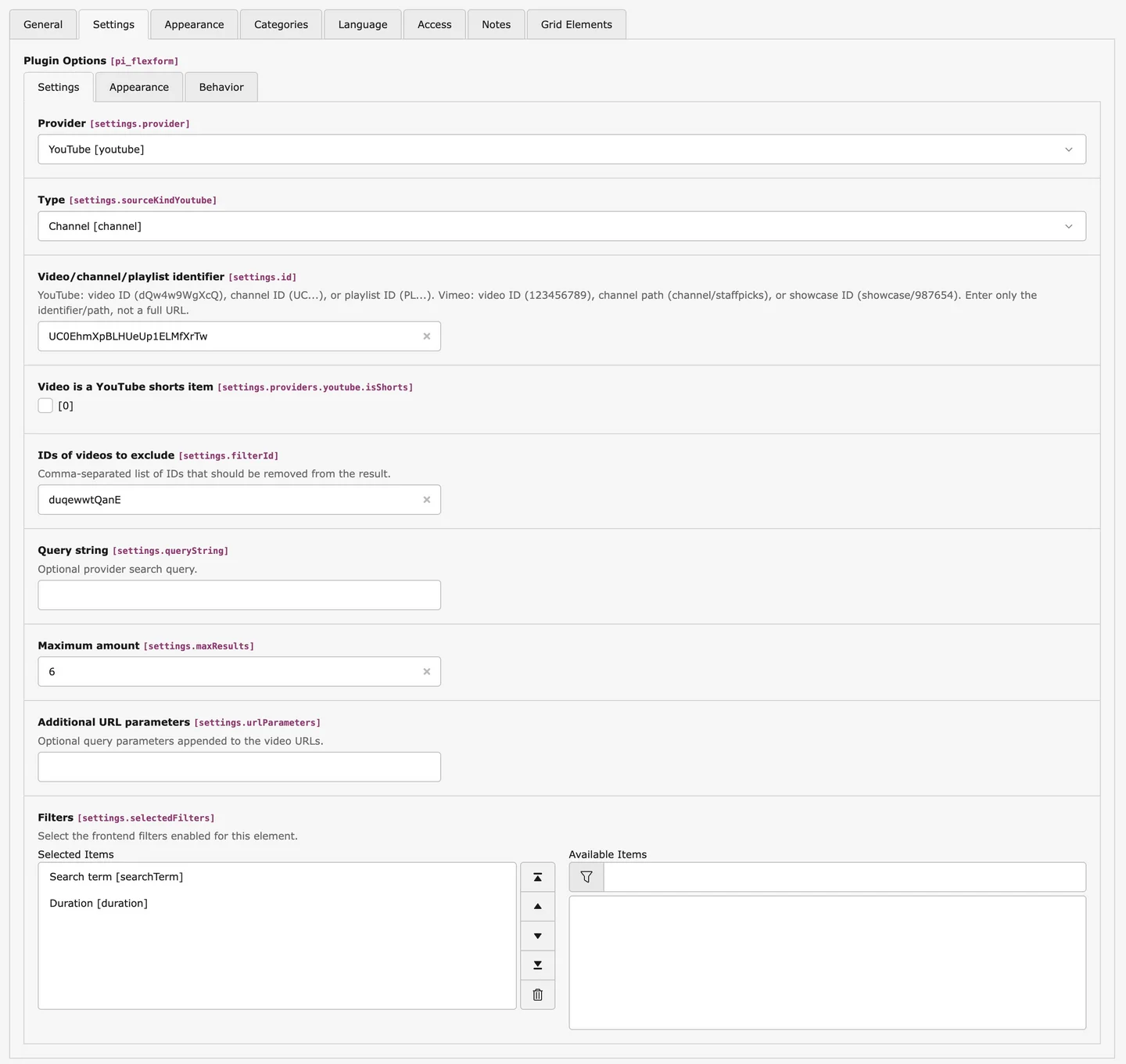 You can easily filter entire video channels in the TYPO3 backend according to desired search terms so that only relevant videos are displayed on your website.