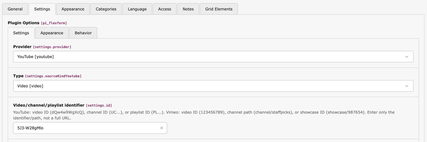 The integration process is intentionally kept simple: For YouTube and Vimeo, simply enter the respective video, channel, playlist, or showcase ID in the content element of sg_video, and the desired content will be embedded directly into TYPO3. Alternatively, you can select and use local video files from the TYPO3 file system. This allows for flexible video integration with minimal effort, without having to switch between different extensions.