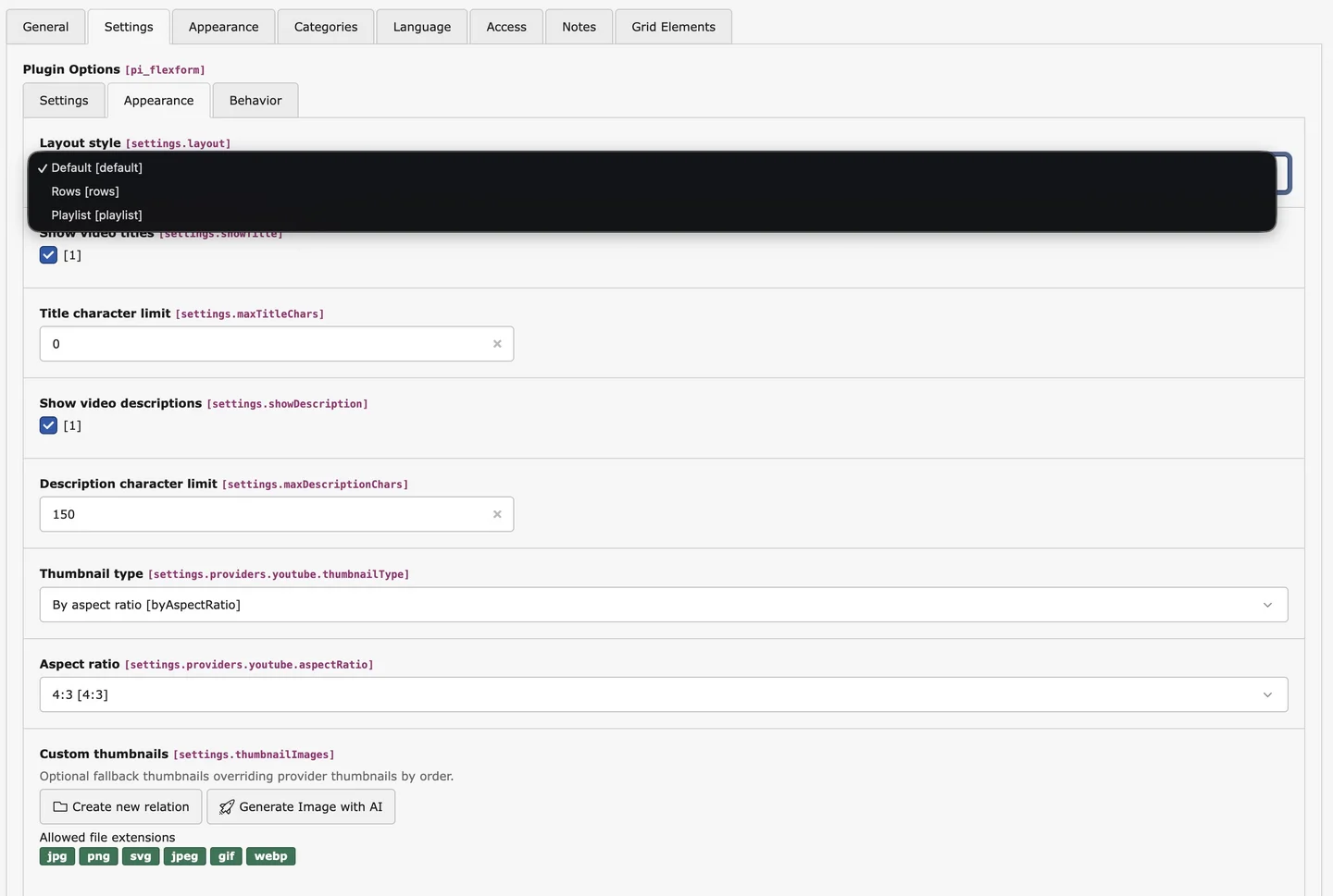 Your media library becomes even more personal with custom thumbnails, which are the small preview images you see before a video starts. Both video extensions allow you to set custom thumbnails yourself. To do this, all you have to do is upload the images you want to be used as thumbnails in the file list and link them to the related media element.