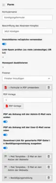 Dieser Finisher ermöglicht es nach dem Absenden des Formulars, das ausgefüllte Formular als PDF an einen Admin und/oder an die User E-Mail-Adresse zu verschicken. Außerdem ist es möglich, die PDF nach dem Absenden der Daten auf der Bestätigungsseite zum Download bereitzustellen.