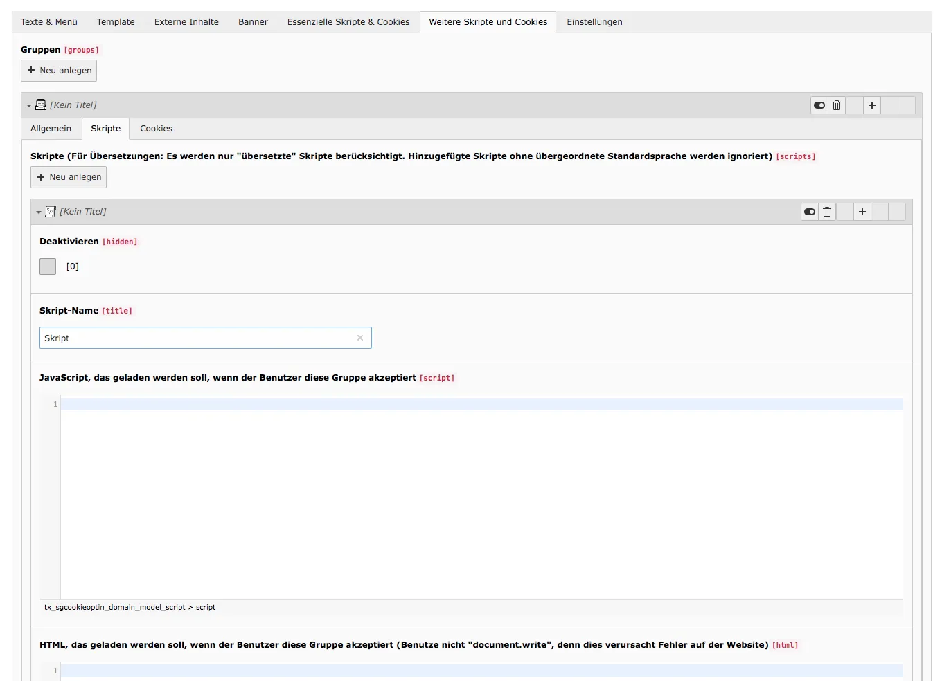 // Skript-Element für Cookie Optin erstellen